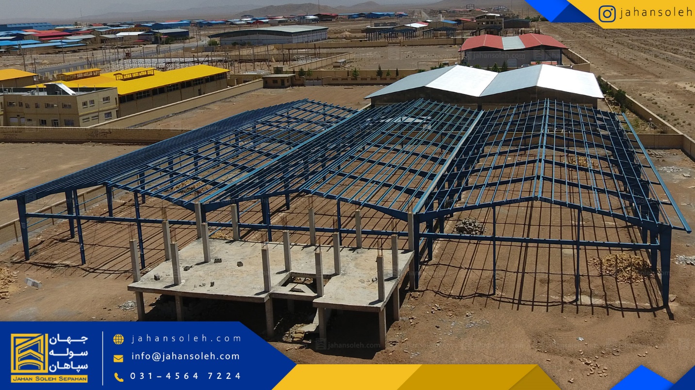 مناسب کارخانهها و تولیدیها، دارای اسکلت فلزی مقاوم و پوشش سقف صنعتی.