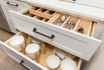 بهترین گزینه برای مرتبسازی لوازم کوچک هستند. نظمدهنده کشو آشپزخانه مخصوص فضاهای کوچک طراحی شده و استفاده بهینه از کابینت را ممکن میکند.