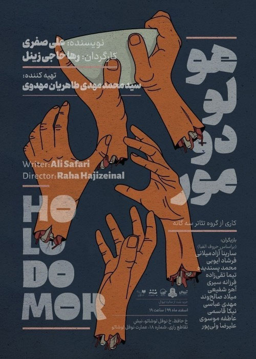 کاری از: گروه تئاتر سه گانه دستیار اول کارگردان و برنامه ریز: مهتا سبحانیه دستیار دوم کارگردان: محمد حائری مشاور هماهنگی: مسیح حیدری زاده طراح صحنه: شهاب شریفی طراح لباس: فرزانه سیری طراح گریم: رها حاجی زینل طراح گرافیک: امین قنبری طراح نور: مسلم رضایی طراح تیزر: حنیف پرنده عکاس: رضا جاویدی، احسان زارع مدیر صحنه: علی سیبی دستیاران مدیر صحنه: محمدرضا فرشاد، علی اصغر ملکی ساخت دکور: احسان رجب زاده مجری گریم: نسترن متینیان دستیاران گریم: سما رحمتی، شکیلا تویلی، زینب بابایی دستیاران طراحی صحنه: شیما صابر، شیرین مدنی دستیار صحنه: یاسین یوسفی، سعید رستمی، بردیا قادریان دهکردی
